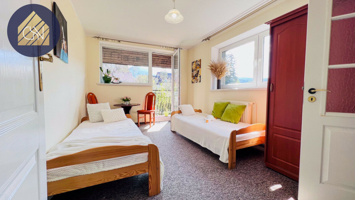 Ostania kondygnacja to 3 pokoje - każdy z wyjściem na balkon oraz swoją łazienką. W każdym pomieszczeniu mogą mieszkać 3 osoby. Z balkonów rozpościera się przepiękny widoków na góry, w tym na królową Karkonoszy - Śnieżkę.