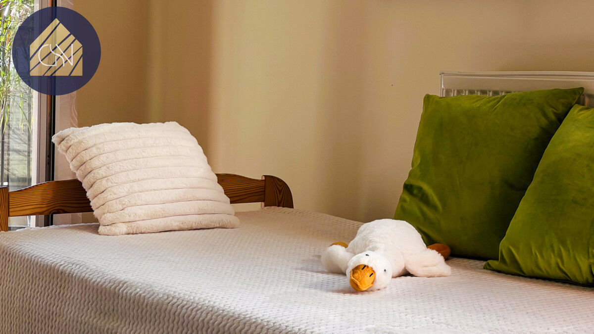 Na piętro wchodzi się klatką schodową z holu z parteru, ale można zrobić dodadkowe wejście z zewnątrz albo od frontu budynku lub od strony ogrodu prze taras. 3 pokoje w tym 2 z wyjściem na balkony stanowią idealne rozwiązanie dla rodziny 2+2 lub idealne opcja dla gości dla 3 rodzin. Na tym piętrze jest kuchnia w pełni wyposażona oraz łazienka z dużą wanną.
